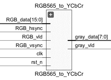 在数字图像处理和视频传输领域,色彩空间的转换是一项基本而关键的技术。RGB565到YCbCr的转换尤为重要,因为它涉及从基于颜色分量的RGB模型转换到更适合视频处理和压缩的YCbCr模型。在YCbCr图像格式中,Y分量表示像素的亮度,而Cb和Cr分量分别蓝色和红色的色度信息,这种分离使得在不同的处理和压缩场景中能够更有效地处理视频信号。在本设计中,实现了一个RGB565_to_YCbCr模块,该模块在接收到RGB565格式的图像数据后,将其转换为YCbCr格式,最终输出灰度图像(Y分量)。以下是该模块的详细设计: