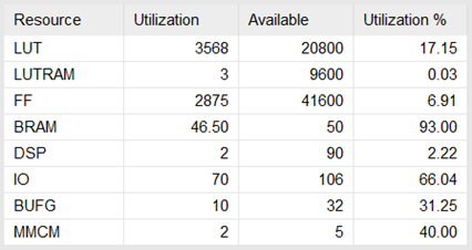 其中值得注意的是,BRAM的利用率高达93%,在存储资源方面已接近其上限,限制了拓展更多逻辑电路设计的可能性。I/O和MMCM的利用率因为需要对图像进行实时处理,所以造成较高的资源占用。DSP单元的利用率仅为2.22%说明在当前设计中并没有充分利用FPGA在高速数学运算方面的优势,这是因为并没有对图像进行过于复杂的处理。