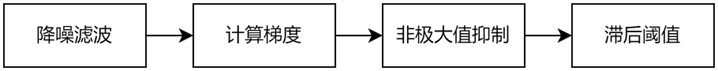 由于边缘检测算法对直接从摄像头获取到的原始图像数据容易受到影响,因此第一步通常是使用高斯滤波器对图像进行处理,以过滤掉高频噪点。这样的目的是增加图像的平滑程度,避免引起差分算子对噪点的强烈响应。然后通过 Sobel 算子计算出图像数据的梯度及其方向。再使用非极大值抑制的方式使边缘变得更加清晰。最后确定一个阈值来进行判断是否为图像边界,Canny 算子使用了滞后阈值来跟踪图像中的边缘线条,最终实现了最优的边缘检测算法,即好的检测,好的定位与最小响应。