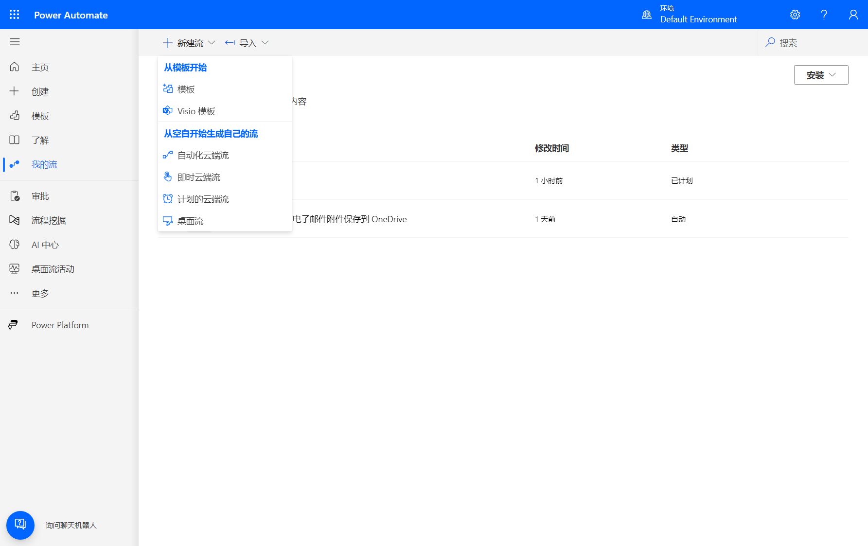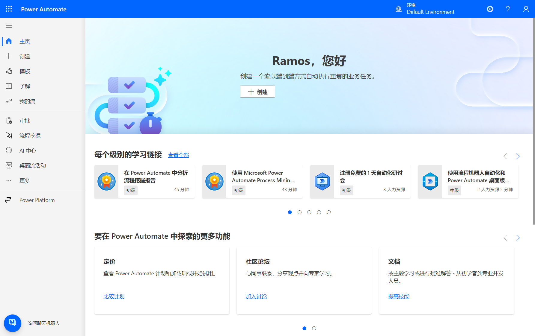 首先进入Power Automate平台,使用 Outlook 的微软账户登录,即可进入管理页面。